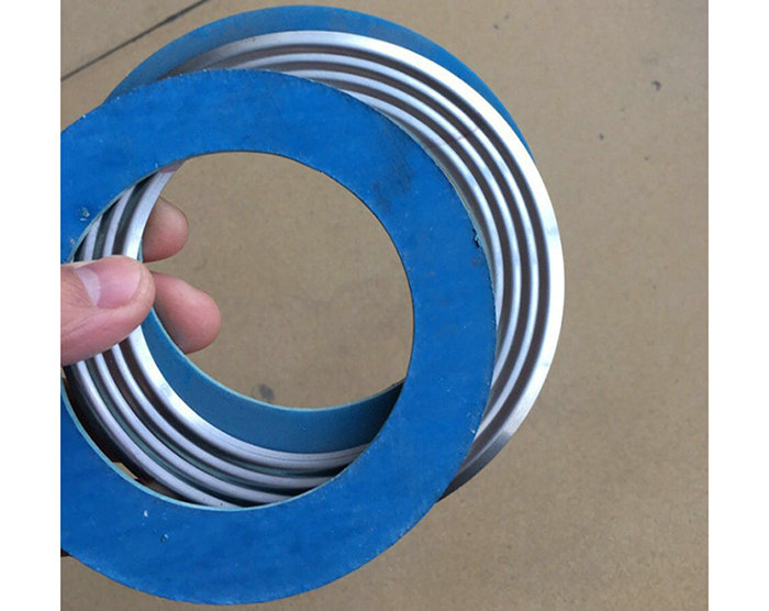 本產品是由四氟車削膜加304不銹鋼波紋板,雙層或者多層石棉板四氟包覆墊片墊片組合而成,波紋板增加了墊片的壓力和拉力。